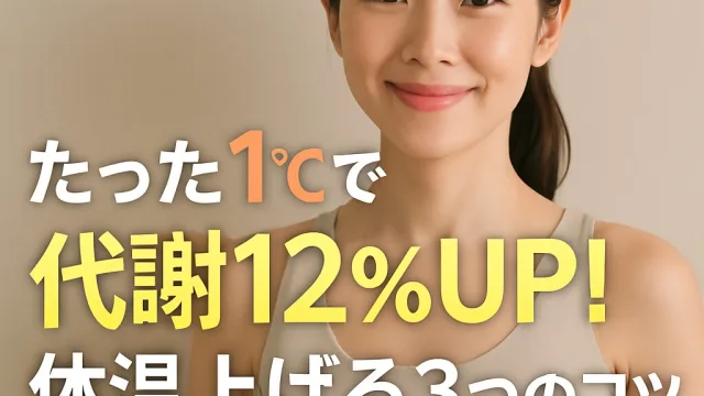→ ダイエット たった1℃で代謝12%UP!体温上げる3つのコツ|初心者でもできるダイエット法 体温をたった1℃上げるだけで、基礎代謝が約12%アップ すると言われています。つまり、同じ生活をしていても 「体が燃えやすい状態」 になるのです。本記事では、「体温を上げて代謝を高める3つのコツ」を初心者向けにわかりやすく解説します。運動が苦手でも、無理せず日常生活の中でできる方法ばかりです。 2025.10.05 → ダイエットダイエットブログ