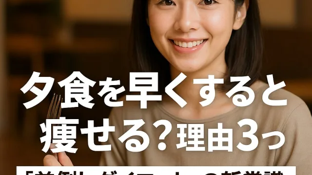 ダイエットブログ 夕食を早くすると痩せる?理由3つ|“前倒しダイエット”の新常識 結論から言うと、夕食を30分〜1時間早くするだけで、人は驚くほど痩せやすくなります。これは気合いや根性の問題ではなく、“人間の体内時計(サーカディアンリズム)” が関係している、科学的に正しいダイエット方法です。この記事では「夕食の時間が太りやすさに直結する理由」について、具体例を出しながら詳しく解説 します。 2025.12.05 ダイエットブログ時間・リズム・タイミング関連