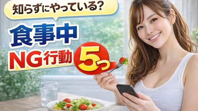 ダイエットブログ 知らずにやっている?食事中NG行動5つ 「そんなに食べていないのに痩せない…」「食事制限しているのに体重が減らない…」その原因、もしかすると食事中のNG行動にあるかもしれません。実は、多くの人が知らずにやっている習慣が、ダイエットを妨げています。この記事では「知らずにやっている?食事中NG行動5つ」について、詳しく解説していきます。 2026.02.23 ダイエットブログ食事・タイミング・食べ方関連