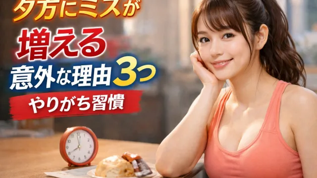 ダイエットブログ 夕方にミスが増える意外な理由3つ|やりがち習慣 「夕方になると判断ミスが増える」「ダイエットも夕方から崩れる」このように感じたことはありませんか?「昼までは順調だったのに夜に食べすぎる」「夕方になると集中力が切れる」「判断が甘くなる」実はこれ、あなたの意志の問題ではありません。人の体と脳は、時間帯によって性能が変わる設計になっています。 2026.04.03 ダイエットブログ時間・リズム・タイミング関連